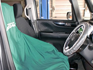 お車に配慮し、ハンドルカバーやシートカバー、紙マットで保護してから検査に入ります。