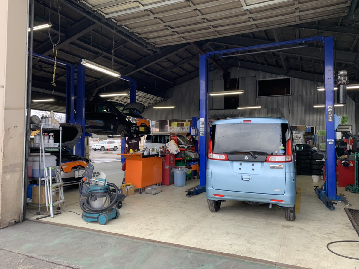 整備記録簿に基づき、ディーラー車検と同じ法定56項を点検します。外装・フロントガラス・信号用具の点検後にエンジンルームの点検を行います。